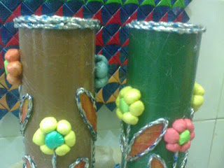 Barang Daur Ulang pot dari bekas gulungan kain. Bila minat monggo diorder