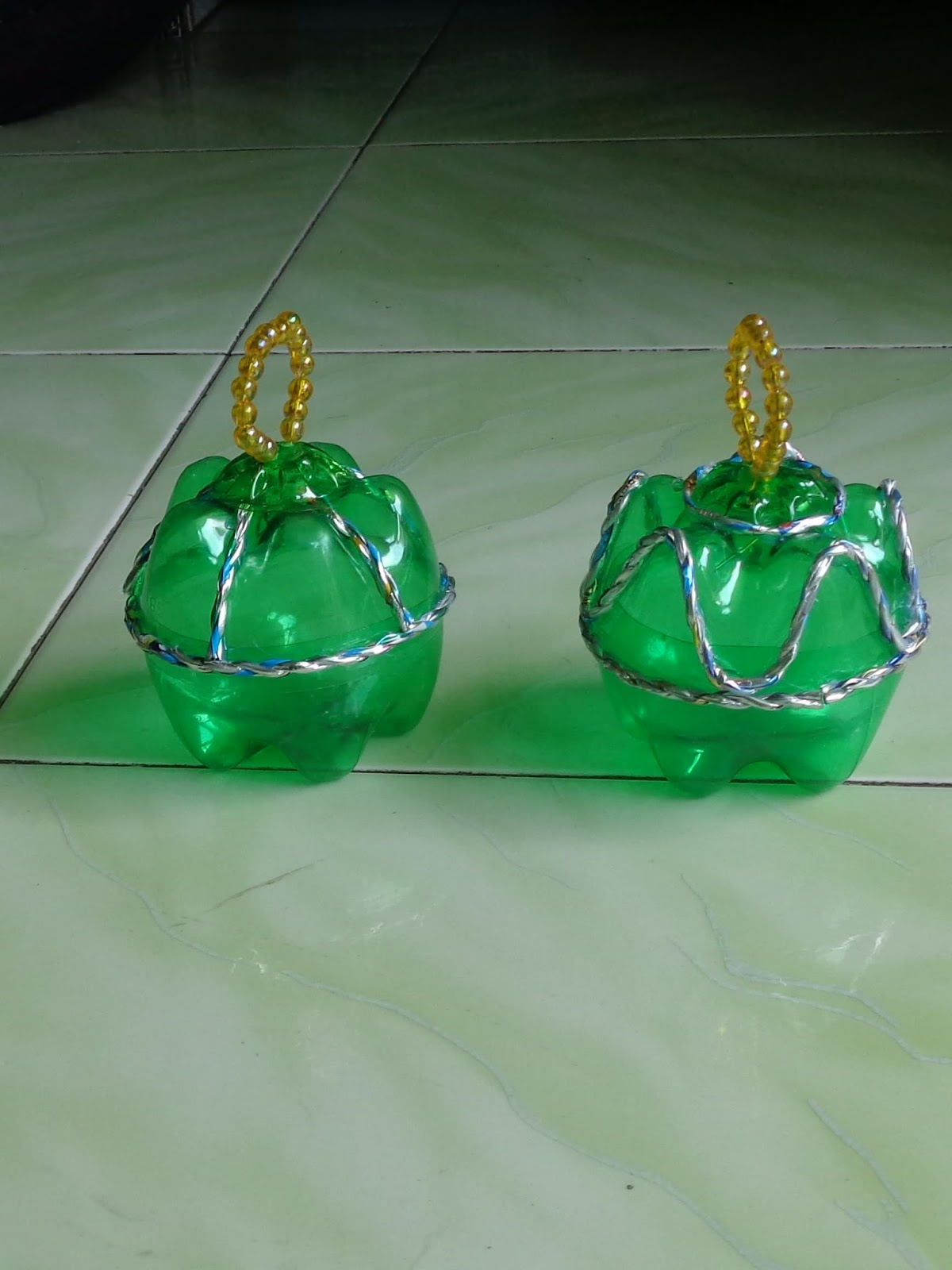 8/ Buah apel gantung hijau dari bekas botol softdring: