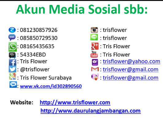 Bu Tris (UKM Tris Flower): Terima Persewaan aneka model Baju daur ulang Surabaya, terima pesanan persewaan baju daur ulang Surabaya & sedia aneka kerajinan daur ulang Surabaya. Almt: Jambangan 3 SD / 23 Surabaya. Tlp: 081230857926, WA/Line: 08165435635, BBM: 54334EBD Fb: Tris Flower E- Mail: trisflower@gmail.com Website: www.trisflower.com Google pencarian: trisflower.com