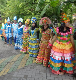 Disewakan aneka model baju daur ulang untuk SD / SMP harga sewa mulai Rp. 50.000 sbb: