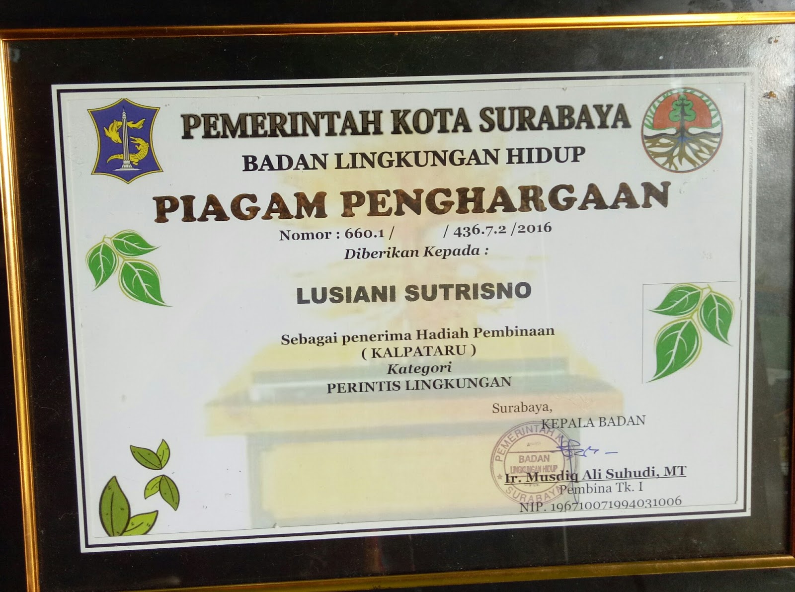 Tgl 30 November 2017 Pengelola Tris Flower Lusiani Sutrisno menerima anugrah Penghargaan KALPATARU tingkat Kota Surabaya.