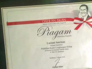 : Tahun 2014 tepatnya tgl 02 Maret 2014 Bu Tris (Lusiani sutrisno) terima Sertifikat penghargaan