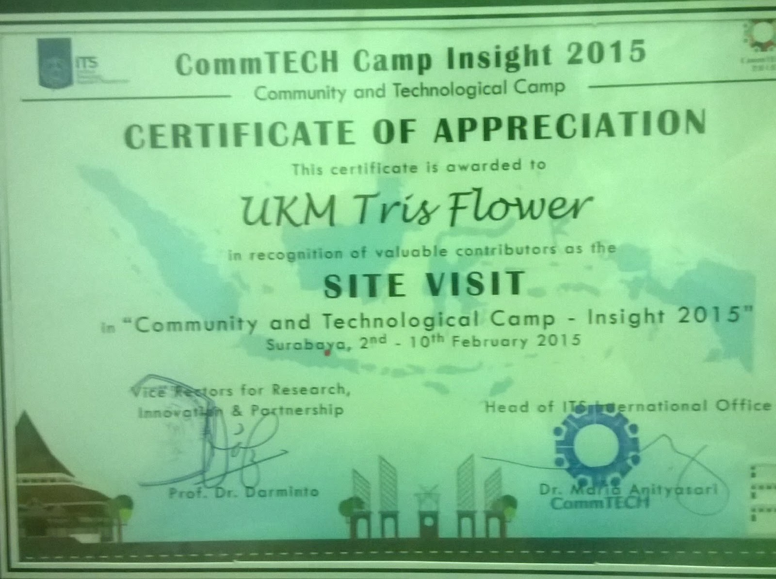 : 07 Februari 2015 Tris Flower terima Sertifikat Internasional tamu kunjungan 10 Negara dari ITS.