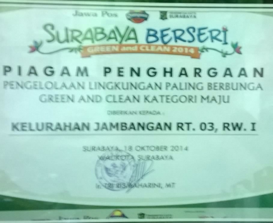 : 04 Oktober 2014 Rt. 03 Rw. I Jambangan Surabaya juara Green & Clean kategori maju